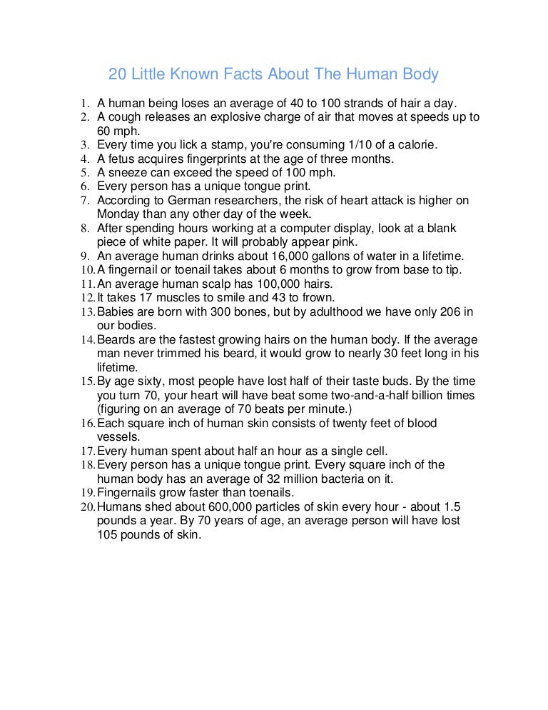 20 Little Known Facts About The Human Body - Reading facts about the human body, space and history is always a good thing.