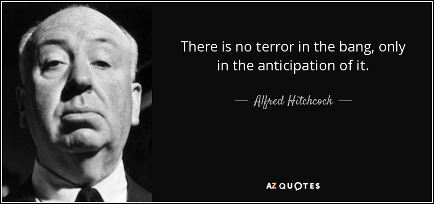 Alfred Hitchcock Quotes Alfred Hitchcock Quotes / There is no terror in the bang, only in the anticipation of it.