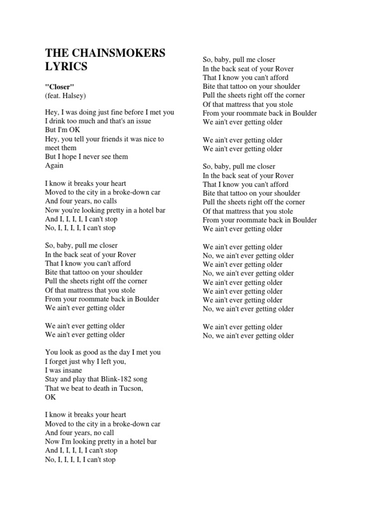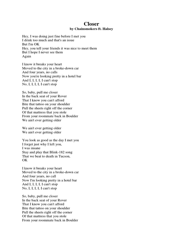 Mattress That You Stole Mattress That You Stole - French translation of lyrics for closer by alex goot feat.