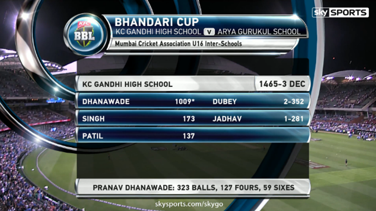 Mumbai Schoolboy Pranav Dhanawade First To Score 1000 In An Innings Cricket News Sky Sports - Pranav dhanawade scored 1009 runs.