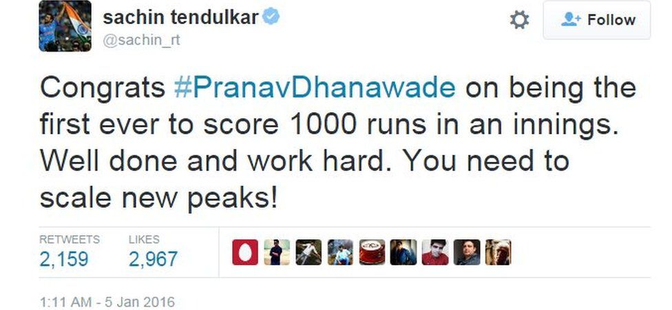 Cricket Record Pranav Dhanawade Hits 1 009 In School Match Bbc News - Indian schoolboy pranav dhanawade has become the first cricketer in history to score 1,000 in a single innings, reaching the milestone on day two of a match between his kc gandhi english high.