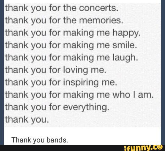 Thank You For The Concerts Thank You For The Memories Thank You For Making Me Happy Thank You For Making Me Smile Thank You For Making Me Laugh Thank You For Loving - It might be nice to see other members take a second to let the team know what made them smile today in regards to this website.