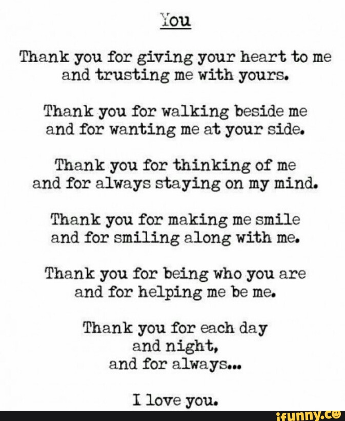 You Thank You For Giving Your Heart To Me And Trusting Me With Yours Thank You For Walking Beside Me And For Wanting Me At Your Side Thank You For Thinking Of - Today i might be feeling low, but thanks to you, you always make my day brighter.